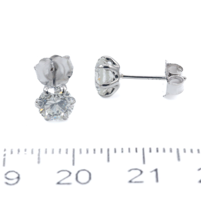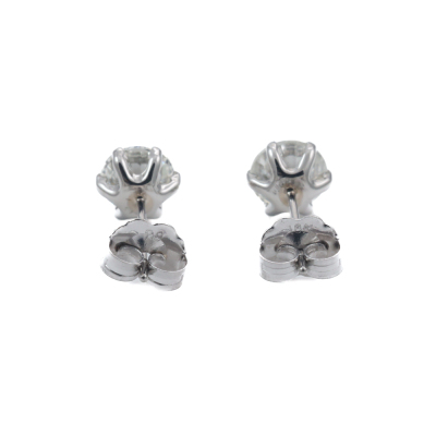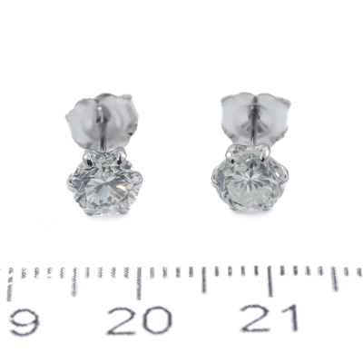 Diamond stud earrings with round Natural Diamonds totalling 1.55ct (Estimated grading: J SI2). Platinum-900 with 18ct white backs. Weight: 0.9g. (Pre-owned)