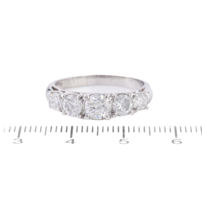 Diamond eternity ring with 5 round Natural Diamonds totalling 1.56ct (Estimated grading: G-H SI-P1). Platinum - 900. Ring size O. Band width: 2.6mm-3.6mm. Weight: 5g. (Pre-owned)