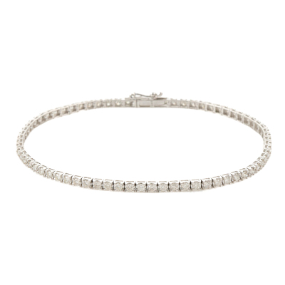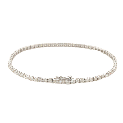 Diamond tennis bracelet with 72 round Natural Diamonds totalling 1.56ct (Estimated grading: HIJ SI). 14ct white gold. Length: 18cm. Weight: 4.0g. (New)