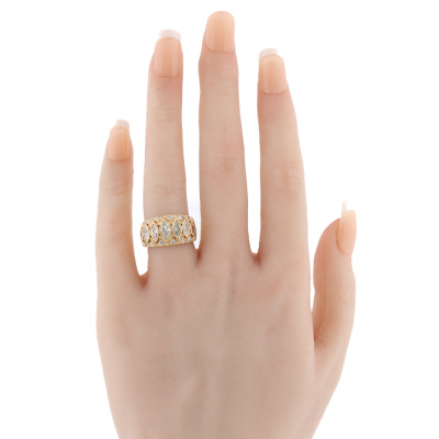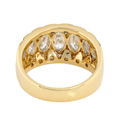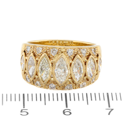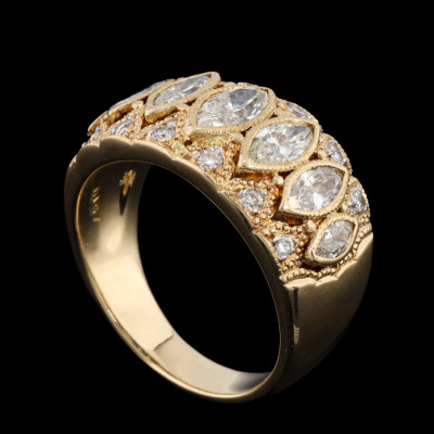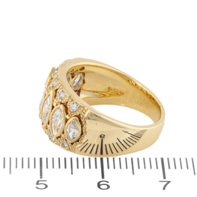 Diamond dress ring with round & marquise cut Natural Diamonds totalling 1.57ct (Estimated grading: H-J VS-SI). 18ct yellow gold. Ring size L. Width: 3.8mm - 7.3mm. Weight: 8.5g