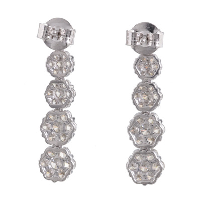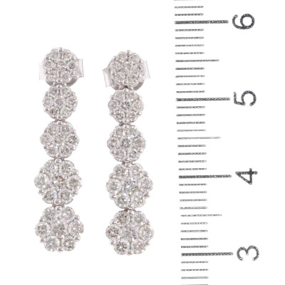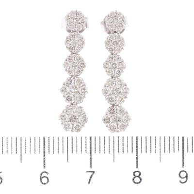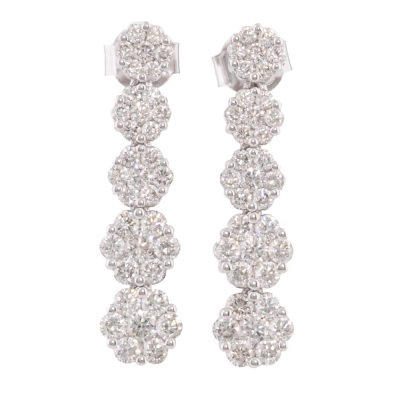 Diamond drop earrings with 70 round Natural Diamonds totalling 1.60ct (Estimated grading: I-J SI). 14ct white gold with 14ct white gold backs. Length: 2.6cm. Weight: 3.5g. (New).