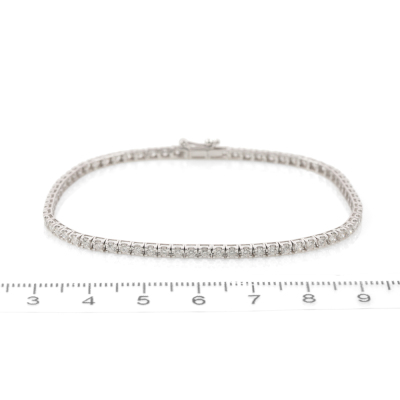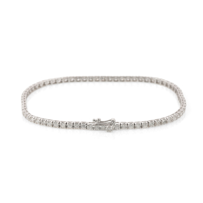 Diamond tennis bracelet with 72 round Natural Diamonds totalling 1.62ct (Estimated grading: G-H SI-P1). 14ct white gold. Length: 18cm. Weight: 4.0g. (New)