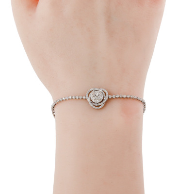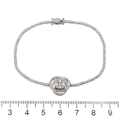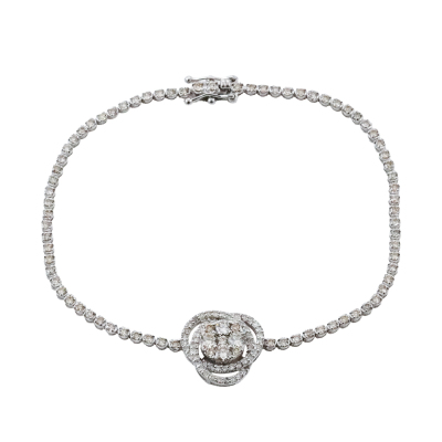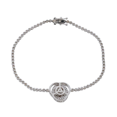 Diamond bracelet with round Natural Diamonds totalling 1.66ct (Estimated grading: Light Champagne SI-P1). Centre motif size: 12.7 x 12.7mm. 18ct white gold. Length: 16.5cm. Weight: 3.9g. (Pre-owned)