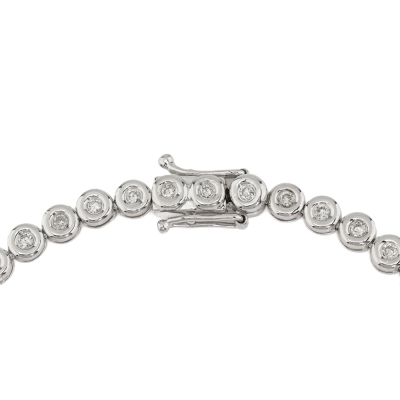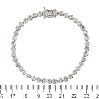 Diamond tennis bracelet with 42 round Natural Diamonds totalling approximately 1.68ct (Estimated grading: HIJ SI2). 18ct white gold. Length: 18.5cm. Weight: 11.3g. (Pre-owned)