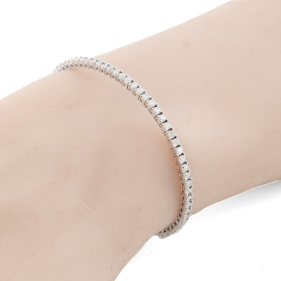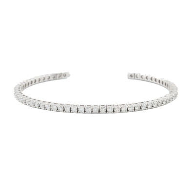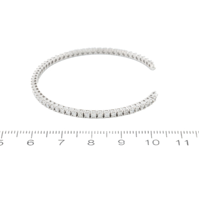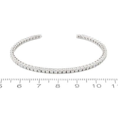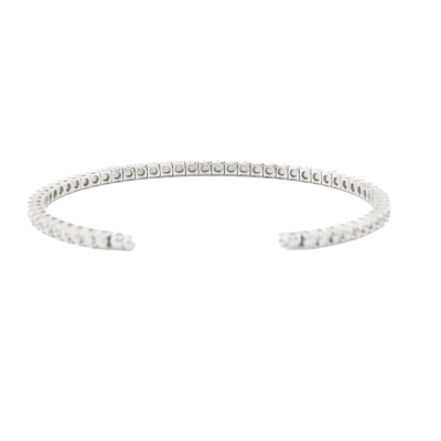 Diamond cuff bangle with 58 round Natural Diamonds totalling approximately 1.70ct (Estimated grading: H-I SI). 18ct white gold. Wrist size: 15cm. Width: 2.3mm. Weight: 5.4g. (Pre-owned)
