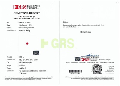 1.70ct Unheated Mozambican Ruby Ring GRS