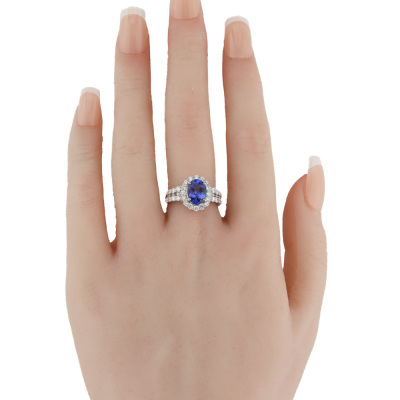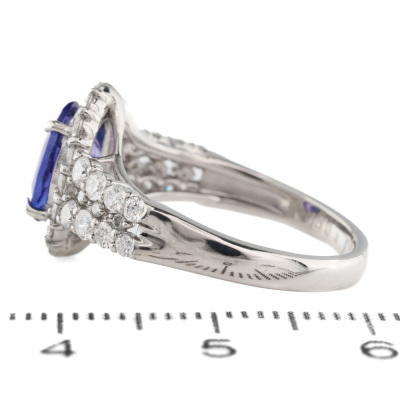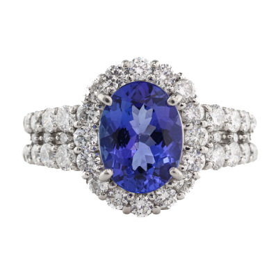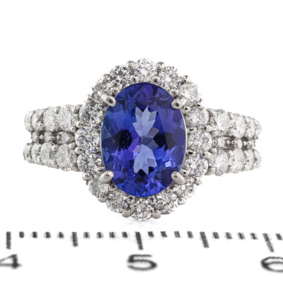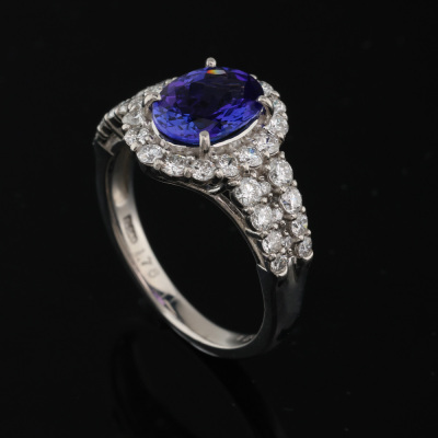Tanzanite and Diamond ring with oval shape Natural Tanzanite of 1.76ct and round Natural Diamonds totalling 0.97ct (Estimated grading: H-I SI-P1). Platinum - 900. Ring size M1/4. Band width: 2.4mm - 3.7mm. Weight: 6.3g. (Pre-owned)