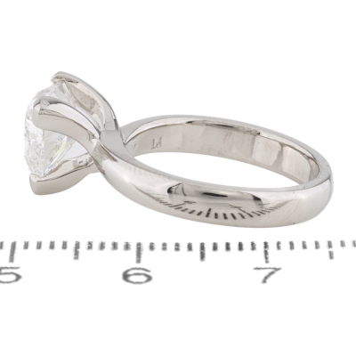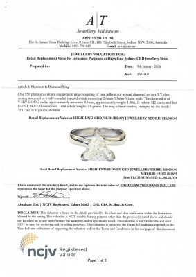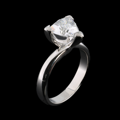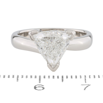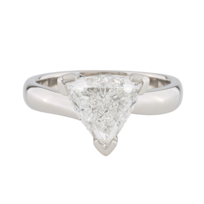 Diamond solitaire ring with centre trilliant cut Natural Diamond of approximately 1.80ct (with Valuation Certificate graded as E SI2). Platinum-950 (XRF tested, stamped 'PT'). Ring size K. Band width: 3.1mm - 3.3mm. Weight: 7.0g.