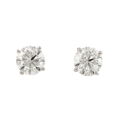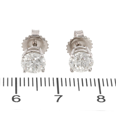 Diamond stud earrings with 2 round brilliant cut Natural Diamonds totalling 1.80ct (with GIA Summary Reports graded as H VVS1 #6511558099 & I VVS2 #151850877). 18ct white gold. Weight: 1.5g. (New)