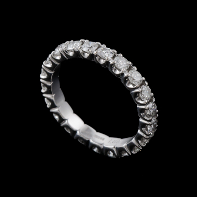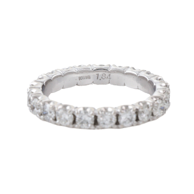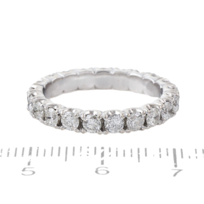 Diamond full hoop eternity ring with 21 round Natural Diamonds totalling 1.84 (Estimated grading: G-H SI-P1). 18ct white gold. Ring size: O. Band width: 3.2mm. Weight: 4.6g. (Pre-owned)