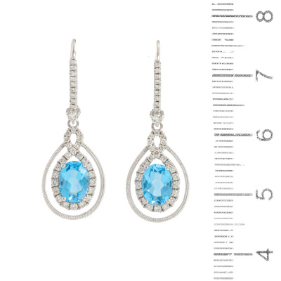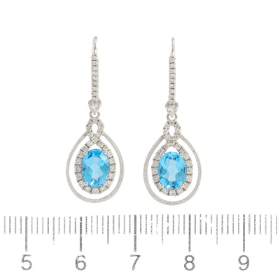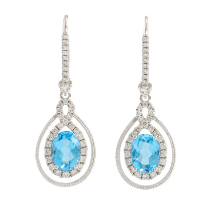 Topaz and Diamond lever back drop earrings with oval shaped natural Topazes totalling 1.87ct and round natural Diamonds totalling 0.45ct (Estimated grading: H SI). 14ct white gold. Weight: 3.1g. (New)