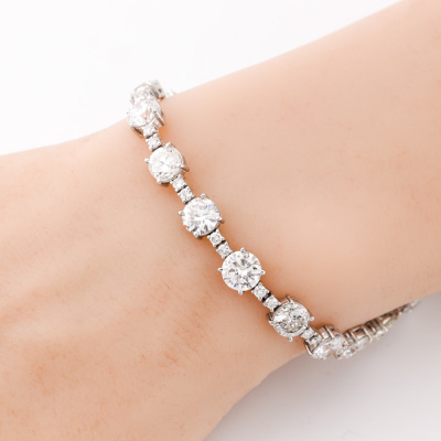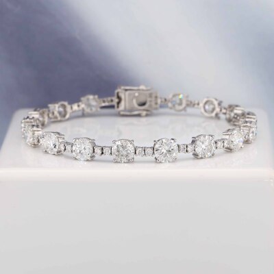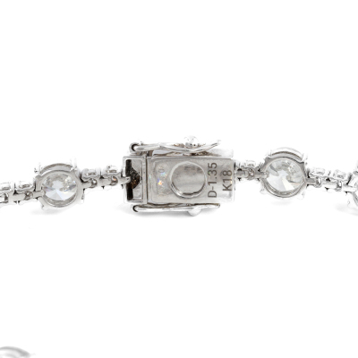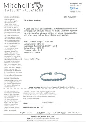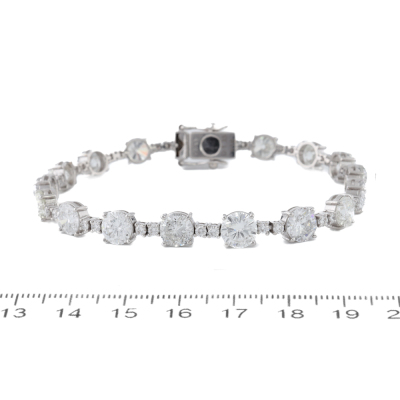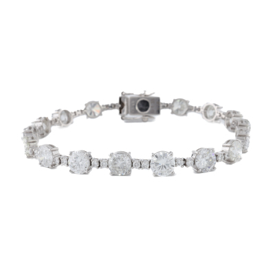 Diamond bracelet with 17 round Natural Diamonds totalling 17.50ct (Estimated grading: I-J SI-P1) and round Natural Diamonds totalling 1.35ct (Estimated grading: I-J SI-P1). 18ct white gold. Length: 20cm. Weight: 19.2g. With Valuation Certificate #421066. (Pre-owned)