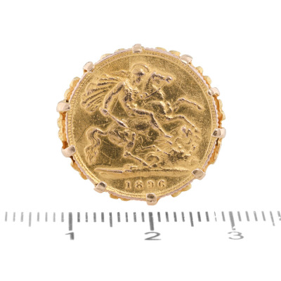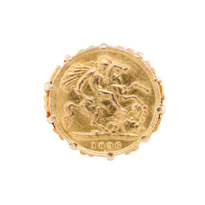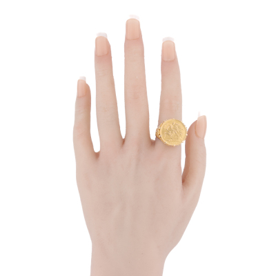 Sovereign Gold Coin design ring 18ct yellow gold. Ring size N 1/4. Weight: 10.0g. (Pre-owned).