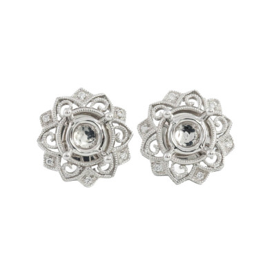 18ct Gold Semi Mount Earrings with Diamonds