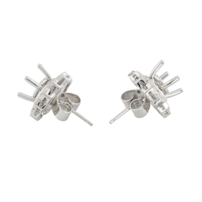 18ct white gold 4 claw semi mount detachable stud earrings (note centre stone is not included) for 6.5mm centre round stones. With round Natural Diamonds totalling approximately 0.06ct. With 18ct white gold backs. Weight: 6.5g. (As new)