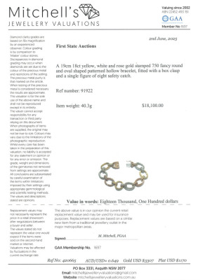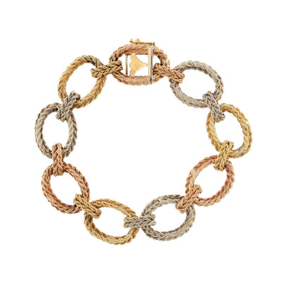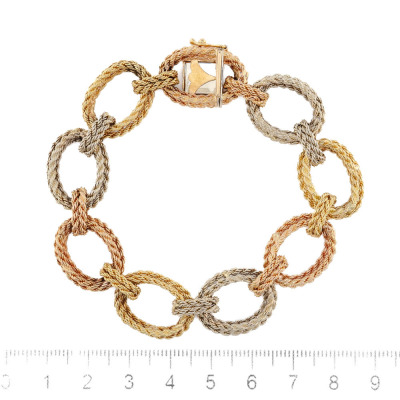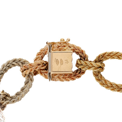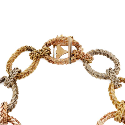 Gold rope hoop bracelet with 18ct rose, yellow and white gold. Length: 19.0cm. Weight: 40.3g. With Certificate #420665. (Pre-owned)
