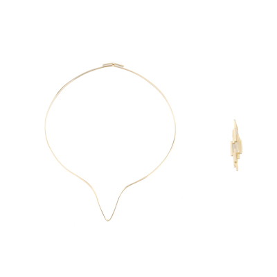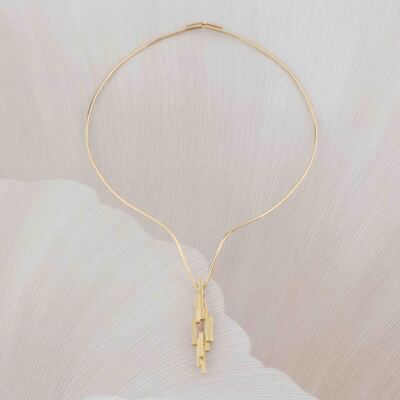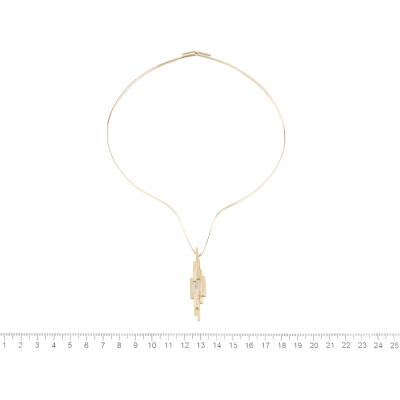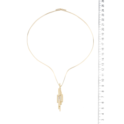 Detachable gold pendant/brooch. Pendant/ brooch size: 5cm x 1cm. 18ct yellow gold pendant/brooch with 18ct yellow gold (XRF tested, no stamp) V shape wire necklace. Inner circumference: approximately 36.5cm. Weight: 22.5g. With Valuation Certificate dated 06/04/1979. (Pre-owned)