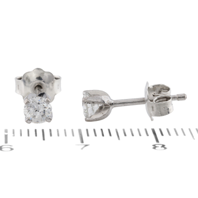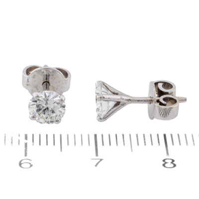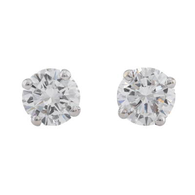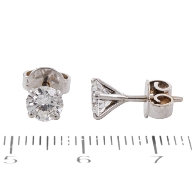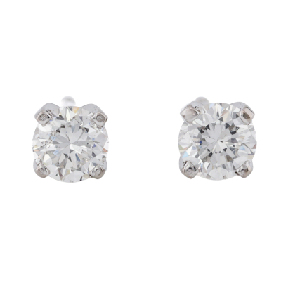 Two pairs of Diamond stud earrings. 1) Diamond stud earrings with round Natural Diamonds totalling approximately 1.00ct (Estimated grading: G VS). 18ct white gold. 2) Diamond stud earrings with round Natural Diamonds totalling approximately 0.40ct (Estimated grading: H-I VS). 9ct white gold with silver backs. Total weight: 2.7g. (Pre-owned).