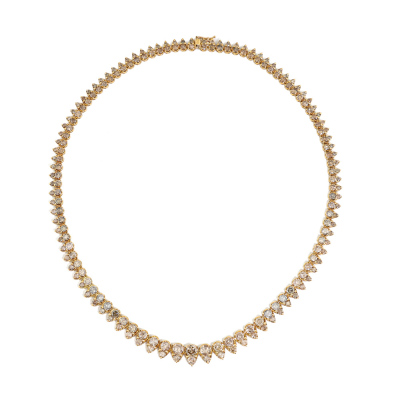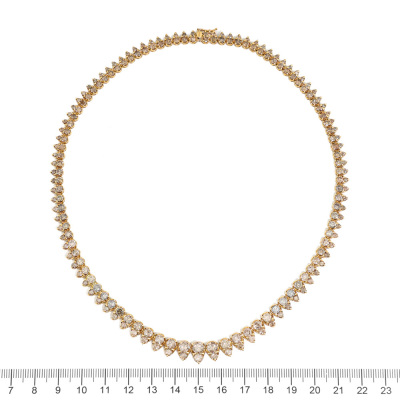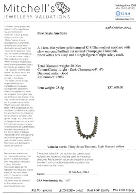 Diamond necklace with round Natural Diamonds totalling 20.00ct (Estimated grading: Light - Dark Champagne P1-P3). 18ct yellow gold. Length: 41cm. Weight: 25.5g. With Valuation Certificate #421799. (Pre-owned)