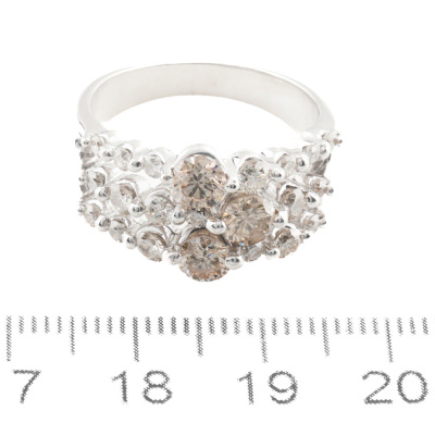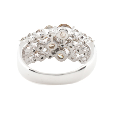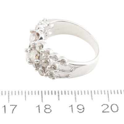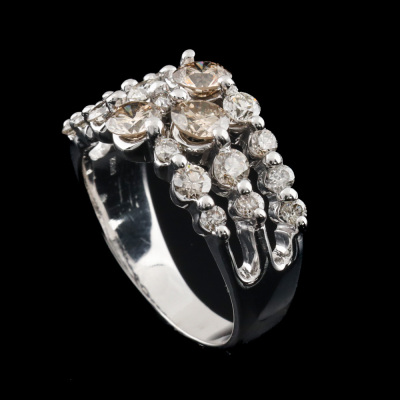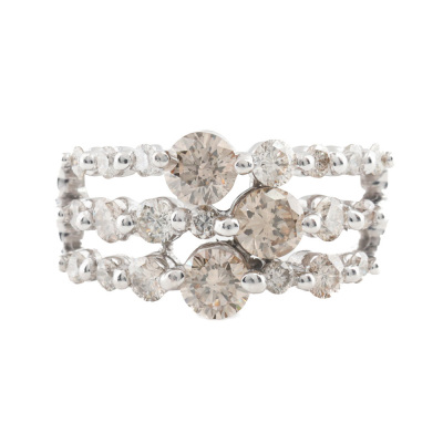 Three-row Diamond dress ring with round Natural Diamonds totalling 2.00ct (Estimated grading: Light Champagne - Champagne H-I SI-P1). 18ct white gold. Ring size O 1/4. Band width: 3.3mm - 5.5mm. Weight: 7.2g. (Pre-owned)