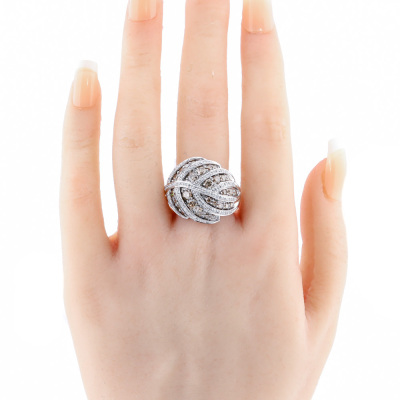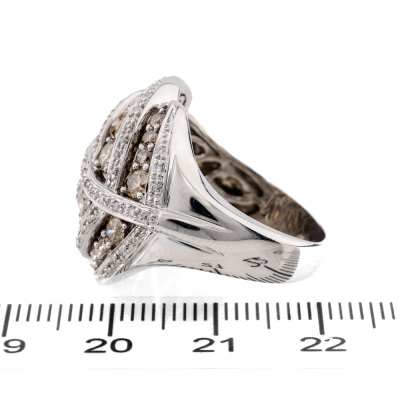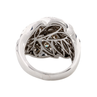 Leave design ring with round Natural Diamonds totalling 2.00ct (Estimated grading: Champagne & H-I SI-P1). 18ct white gold. Ring size P1/2. Band width: 3.9mm - 6.6mm. Weight: 13.4g. (Pre-owned)