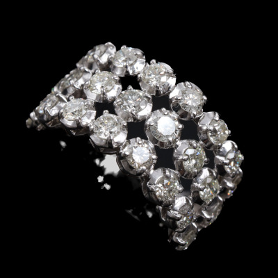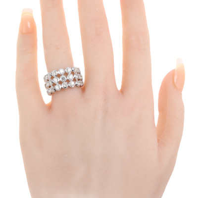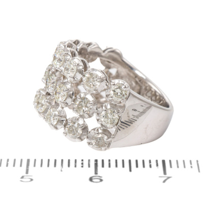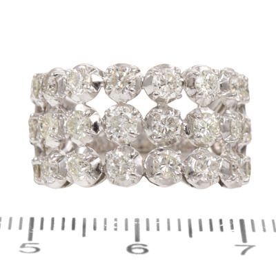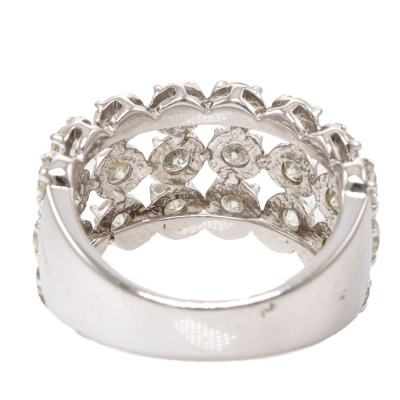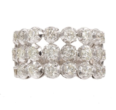 Three row Diamond dress ring with 24 round Natural Diamonds totalling 2.00ct (Estimated grading: I-J P1-P2). 18ct white gold. Ring size K1/2. Band width: 4.6mm-8.0mm. Weight: 7.4g.