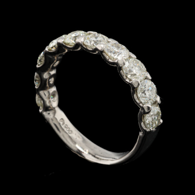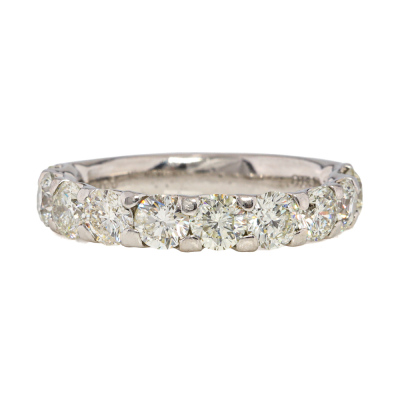 Diamond eternity ring with 10 round Natural Diamonds totalling 2.00ct (Estimated grading: L-M P1). Platinum - 900. Ring size K1/2. Band width: 3.3mm - 3.5mm. Weight: 4.9g. (Pre-owned)