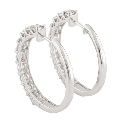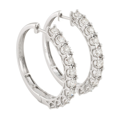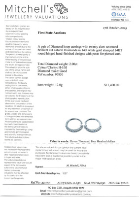Diamond hoop earrings with 20 round Natural Diamonds totalling 2.00ct (Estimated grading: H-I SI). 14ct white gold. Hoop diameter: 35.0mm. Hoop width: 4.2mm. Weight: 12.0g. With Valuation Certificate #421757. (New)