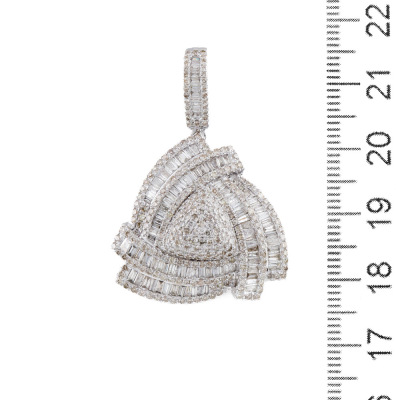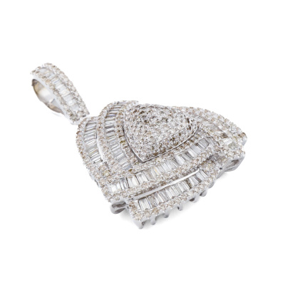 Diamond pendant with round & baguette cut Natural light yellow and white Diamonds totalling 2.00ct (Estimated grading: H-J SI). 14ct white gold. No chain provided. Weight: 8.1g. (Pre-owned)