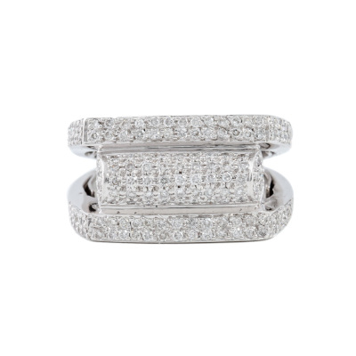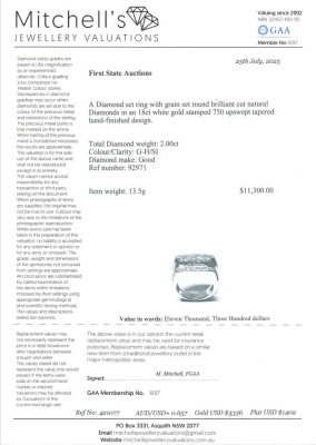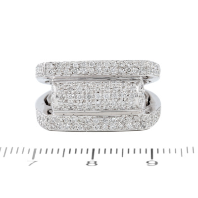 Diamond ring with round Natural Diamonds totalling 2.00ct (Estimated grading: G-H SI). 18ct white gold. Ring size O½. Band width: 5.9mm - 4.8mm. Weight: 13.5g. With Valuation Certificate #421077. (Pre-owned)