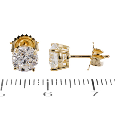 Diamond stud earrings with 2 round brilliant cut Natural Diamonds totalling 2.00ct (with GIA Reports graded as D VS1# 6521687458, 2537437651 ). 18ct yellow gold. Weight: 1.7g. (New)
