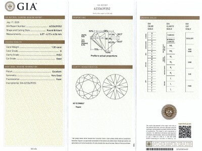 Diamond stud earrings with 2 round brilliant cut Natural Diamonds totalling 2.00ct (with GIA Reports graded as D VVS2 #3525656252, 6233639352). 18ct yellow gold. Weight: 1.7g. (New)