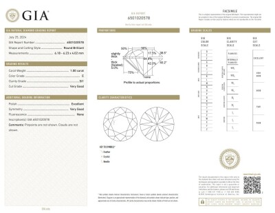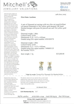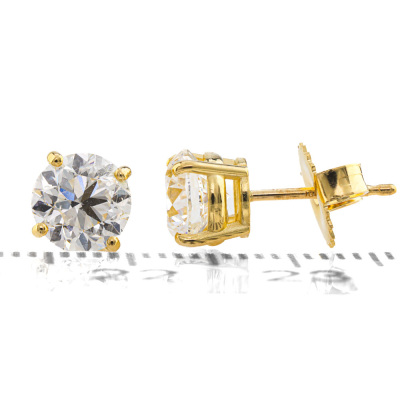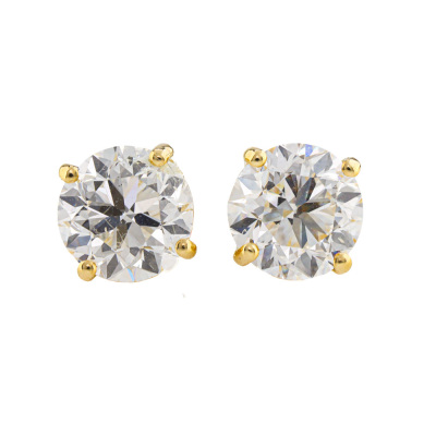 Diamond stud earrings with 2 round brilliant cut Natural Diamonds totalling 2.00ct (with GIA Reports graded as E SI1 # 6501020578, 7498095135). 18ct yellow gold. Weight: 1.7g. With Valuation Certificate #420814. (New)