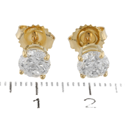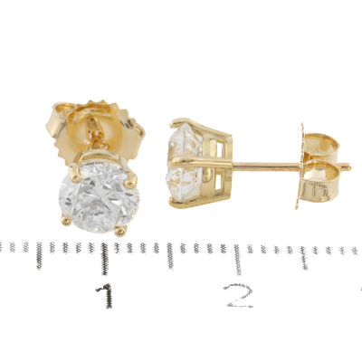 Diamond stud earrings with 2 round brilliant cut Natural Diamonds totalling 2.00ct (with GIA Reports graded as E SI2 #6237762695 & F SI1 #1525937519). 18ct yellow gold. Weight: 1.7g.
