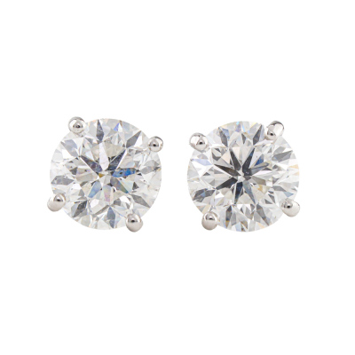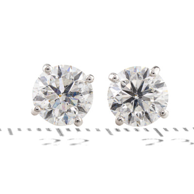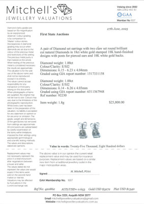 Diamond stud earrings with 2 round brilliant cut Natural Diamonds totalling 2.00ct (with GIA Reports graded as E SI2 # 6511567948, 1517331158). 18ct white gold. Weight: 1.8g. With Valuation Certificate #420862. (New)