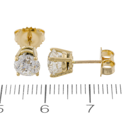 Diamond stud earrings with 2 round brilliant cut Natural Diamonds totalling 2.00ct (with GIA Diamond Dossier Reports graded as F VS2# #5546442231,1545169844). 18ct yellow gold. Weight: 1.7g.