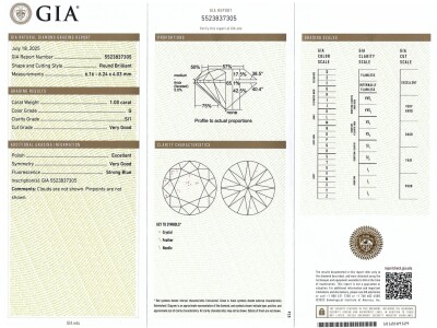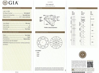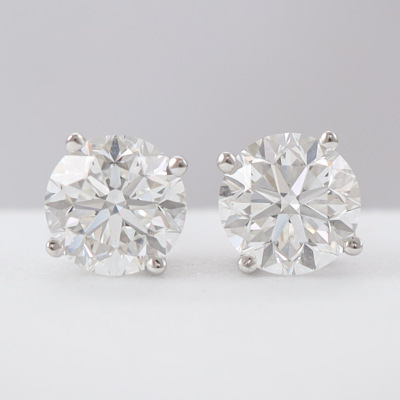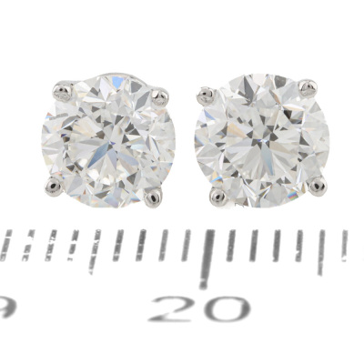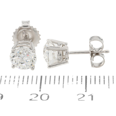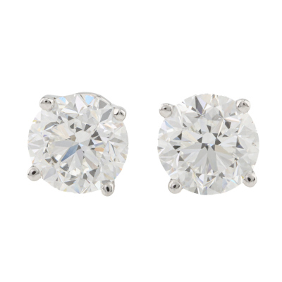 Diamond stud earrings with 2 round brilliant cut Natural Diamonds totalling 2.00ct (with GIA Reports graded as G SI1 #5523837305 and G SI2 #7521484337). 18ct white gold. Weight: 1.6g. (New)