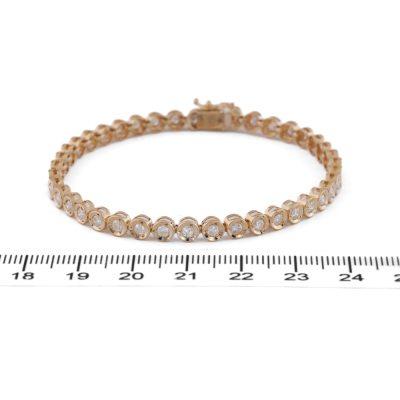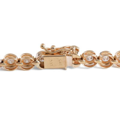 Diamond tennis bracelet with round Natural Diamonds totalling 2.00ct (Estimated grading: H SI-P1). 18ct yellow gold. Length: 18cm. Weight: 10.2g. (Pre-owned)