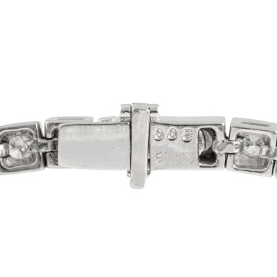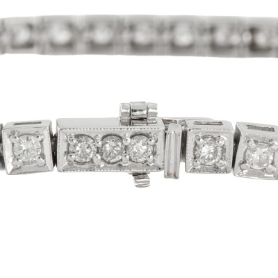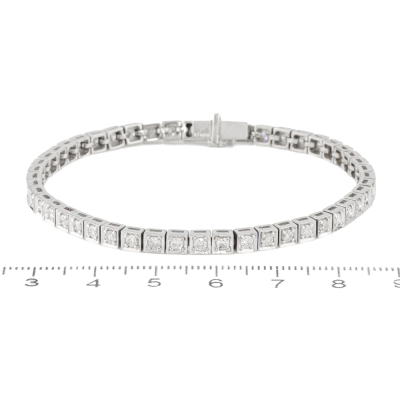 Diamond tennis bracelet with 49 round Natural Diamonds totalling 2.00ct (Estimated grading: HIJ P1-2). 14ct white gold. Length: 18cm. Weight: 12.2g. (Pre-owned)