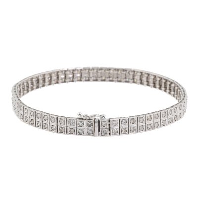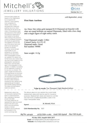Diamond bracelet with round Natural Diamonds totalling 2.00ct (Estimated grading: K-L P1-P2). 18ct white gold. Length: 18cm. Weight: 14.2g. With Valuation Certificate #421459.
