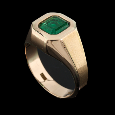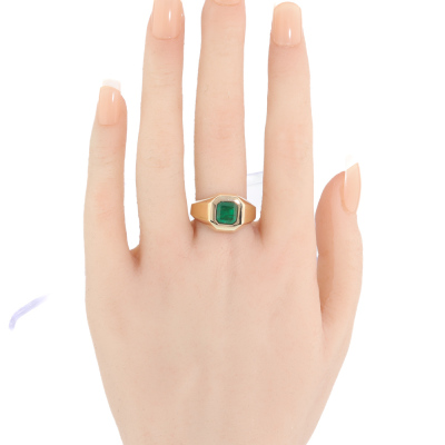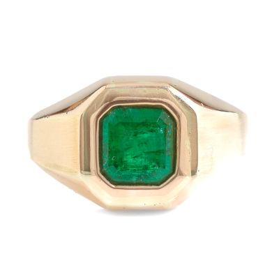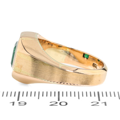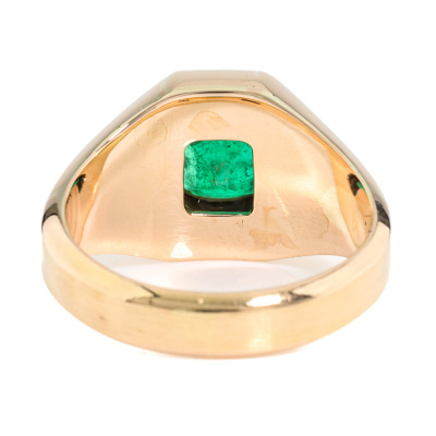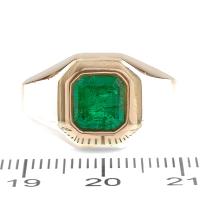 Mens signet ring with square emerald cut Natural Emerald of approximately 2.00ct. 18ct Yellow gold. Ring size Q1/4. Band width: 4.4mm - 6.2mm. Weight: 10.8g. (Pre-owned)