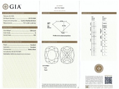 A loose Cushion cut Diamond of 2.00ct (With GIA report graded as D VS2 #2517517859). (New)