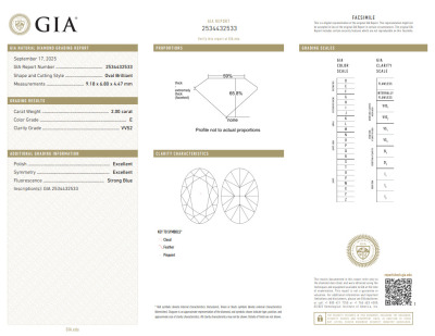 A loose oval shape natural Diamond of 2.00ct (with GIA report graded as E VVS2 #2534432533). (New)