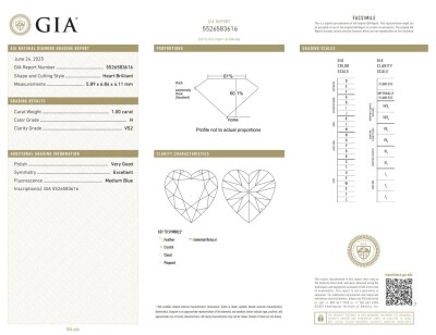 A loose pair of heart shaped Natural Diamonds totalling 2.00ct. (with GIA reports graded as H VS2 #5526583616, G SI1# 6531239236). (New)