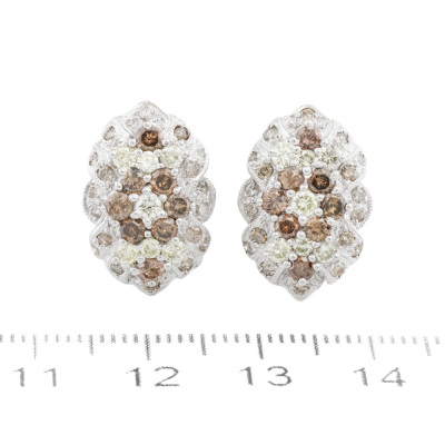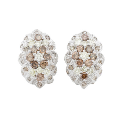 Clip-on earrings (for both pierced & non-pierced ears) with round Natural Diamonds totalling 2.00ct (Estimated grading: Cognac, Light Champagne - Champagne & Light Yellow P1-P2). 18ct white gold. Weight: 7.7g. (Pre-owned)