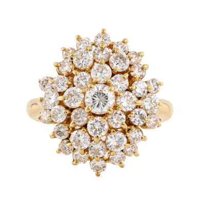 Diamond ring with round Natural Diamonds totalling 2.01ct (Estimated grading: H SI). 18ct yellow gold. Ring size K ½. Band width: 2.9mm - 2.3mm. Weight: 6.6g. (Pre-owned)