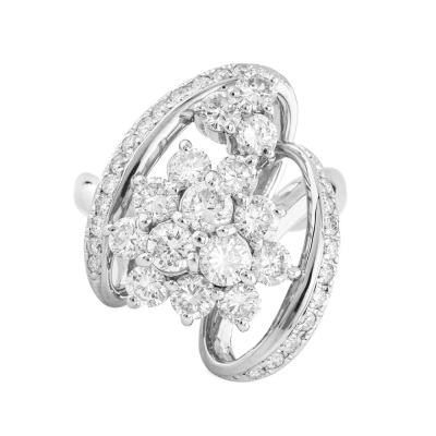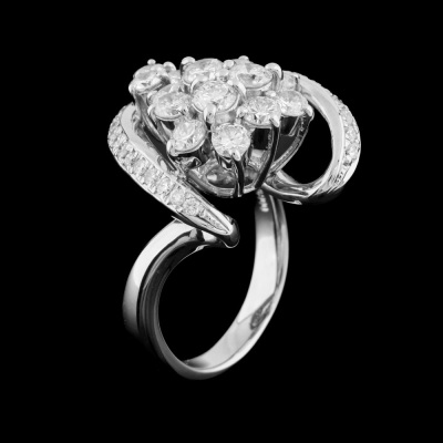 Diamond Dress ring with round Natural Diamonds totalling 2.01ct (Estimated grading: G-H SI). Platinum - 900. Ring size L. Band width: 3.2mm - 3.3mm. Weight: 13.1g. (Pre-owned)