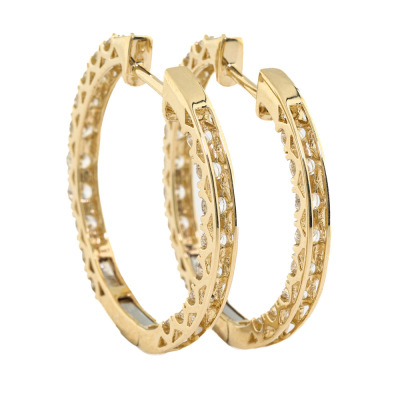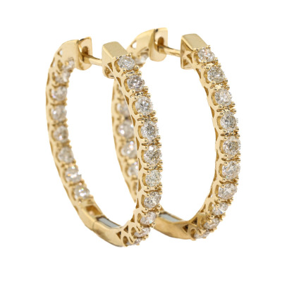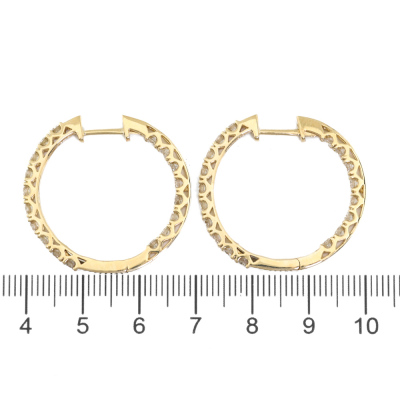 Diamond inside-out hoop earrings with 36 round natural Diamonds totalling 2.01ct (Estimated grading: I-J VS-SI). Back of the hoop has the Diamonds set inside the hoop. 14ct yellow gold. Hoop diameter: 3cm. Hoop width: 2.5mm. Weight: 6.6g.