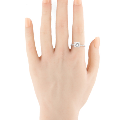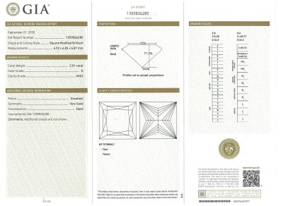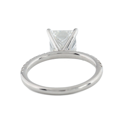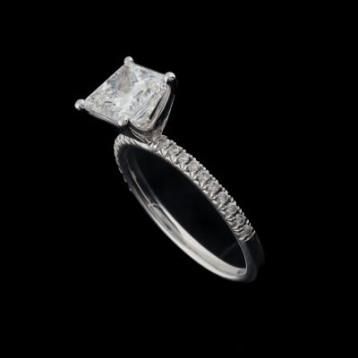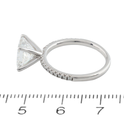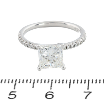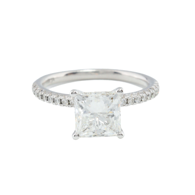 Diamond solitaire ring with princess cut Natural Diamond of 2.01ct (With GIA Report graded as E VVS2 #1359836285) and round Natural Diamonds totalling approximately 0.40ct (Estimated grading: H-I SI). 18ct white gold. Ring size: L. Band width: 1.8mm. Weight: 3.0g. (Pre-owned)