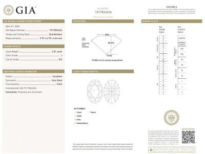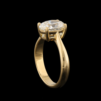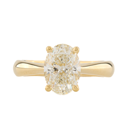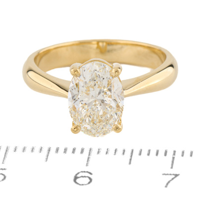 Diamond solitaire ring with oval Natural Diamond of 2.01ct (With GIA Report graded as J SI2 #1517824226) 18ct yellow gold. Ring size K. Band width: 3.1mm - 2.9mm. Weight 4.6g. (New)